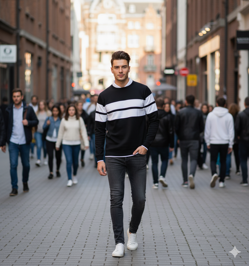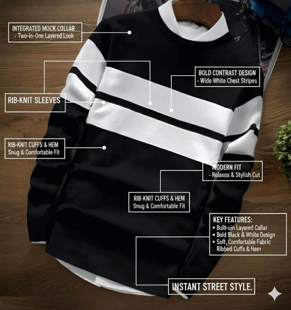 Your New Wardrobe Anchor: Thanks to its classic yet bold black and white palette, this top serves as a highly versatile foundation for countless outfits. It pairs flawlessly with virtually any bottom—from distressed denim and sleek joggers to casual chinos. It’s the go-to garment for quickly achieving an urban, sporty, or elevated casual look, making dressing simple, fast, and stylish.