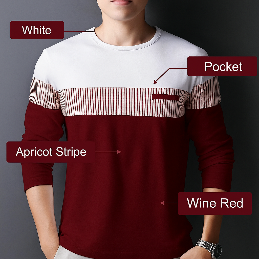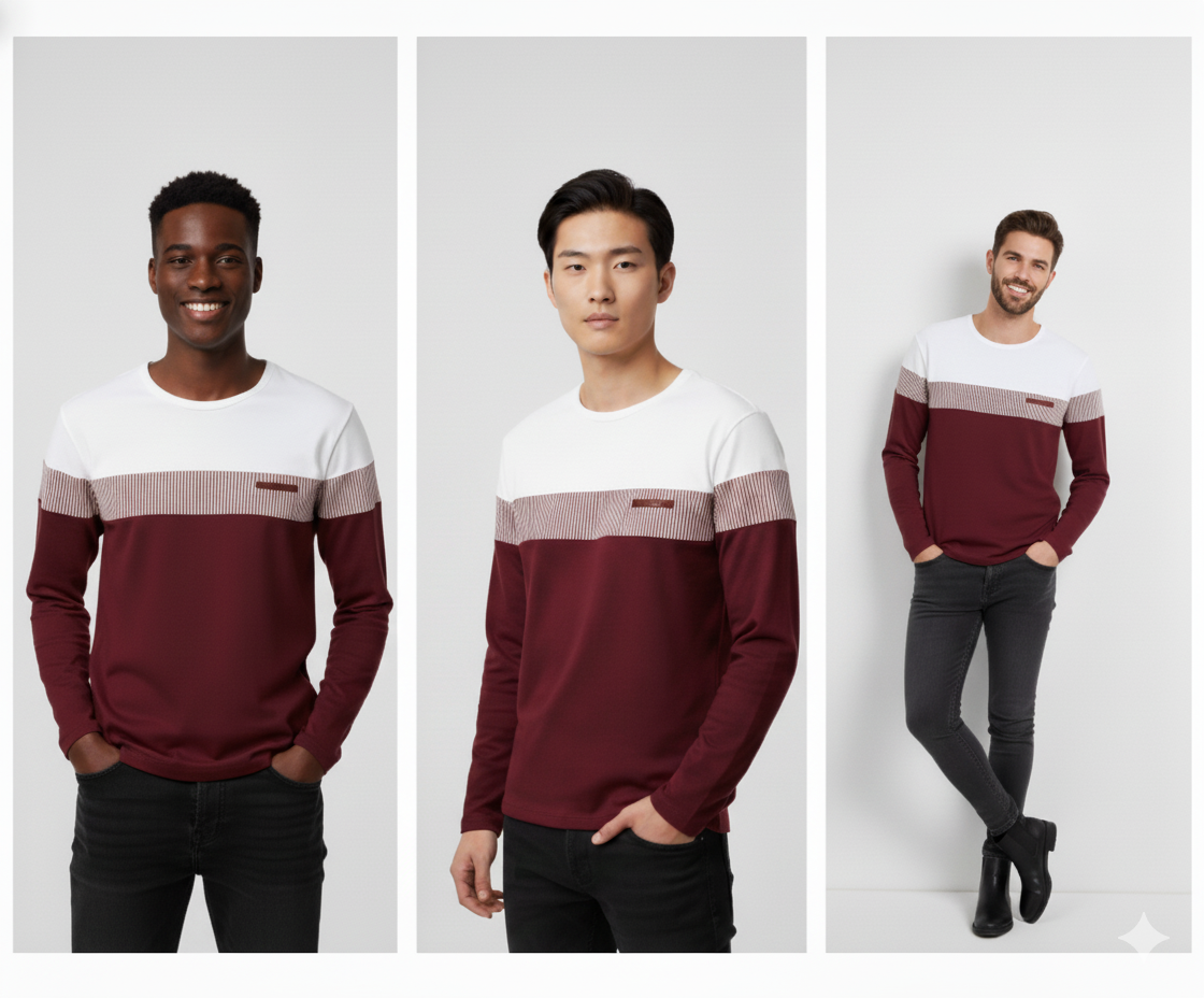 Step up your style with this color-blocked maroon and white sweater, featuring sleek striped detailing for a refined edge. Crafted from a soft, breathable fabric, it offers all-day comfort with a tailored fit that defines confidence. Perfect for work, weekends, or nights out — this is where comfort meets class.