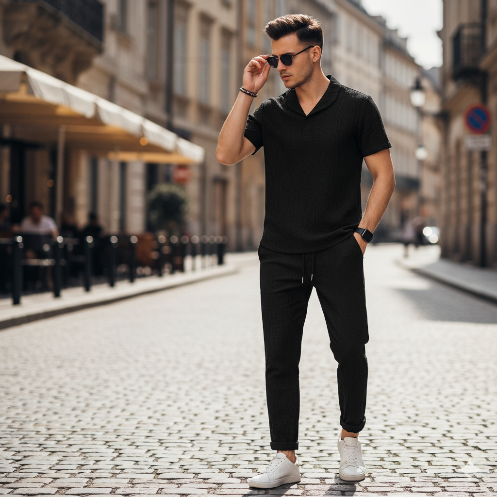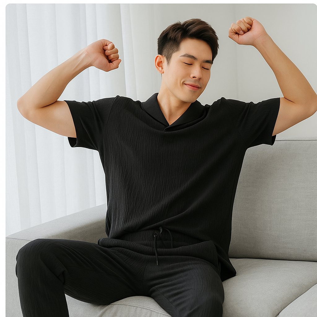 This outfit is made with soft, breathable fabric that keeps you cool, relaxed, and confident from morning coffee to late-night plans. No tightness, no itching — just pure comfort all day long
