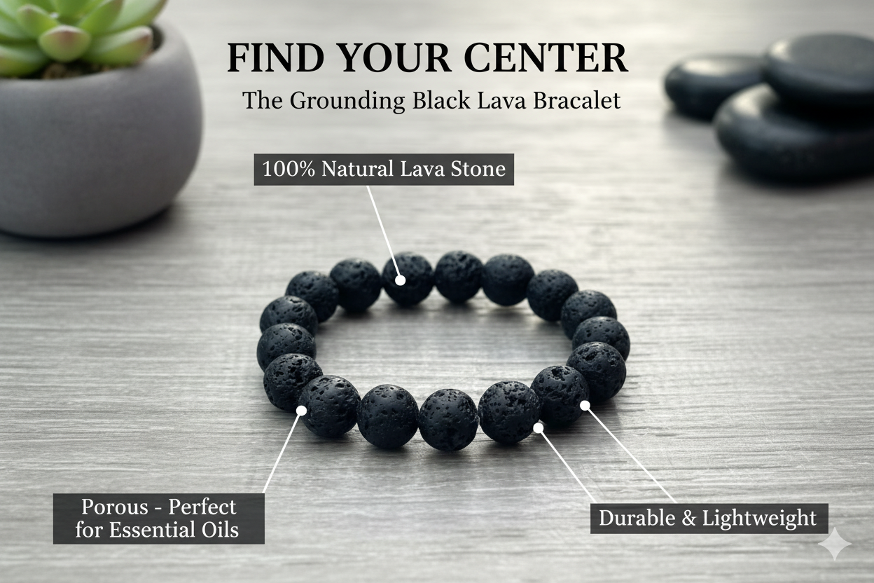 Experience the grounding strength of the earth with this simple yet powerful bracelet. Crafted from genuine porous black lava stone, this piece is known for its ability to absorb essential oils for all-day aromatherapy, making it the perfect accessory for both casual style and deep relaxation. It's the ultimate versatile piece for those seeking calm, focus, and a touch of raw, natural beauty.