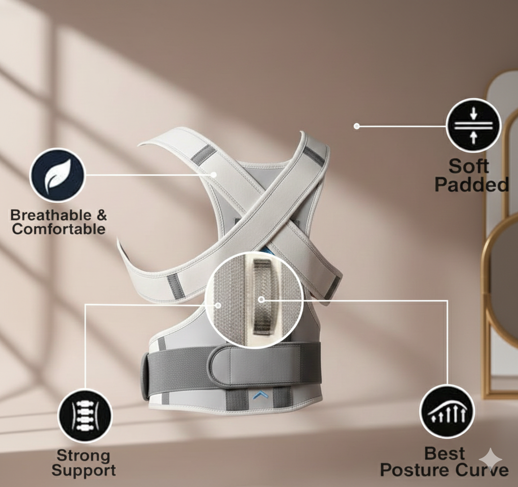 This posture corrector is a wearable device designed to retrain your spinal alignment by gently pulling the shoulders back and providing physical cues to sit or stand up straight. It is specifically engineered to combat "hunchback" posture, rounded shoulders, and upper back strain often caused by long hours at a computer or looking down at devices. The brace typically categorized as semi-rigid, utilizing a combination of flexible fabric and firm vertical "stays" or splints in the back to provide customized reinforcement to the spine.